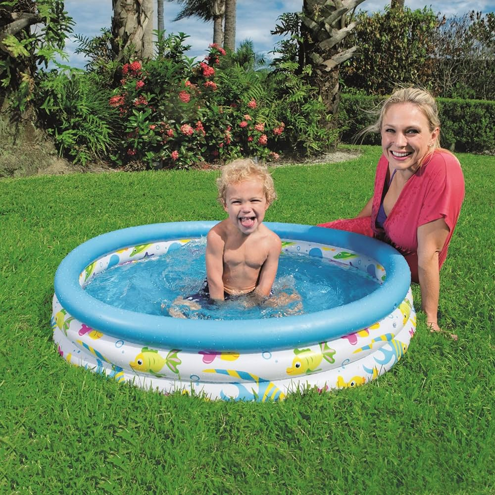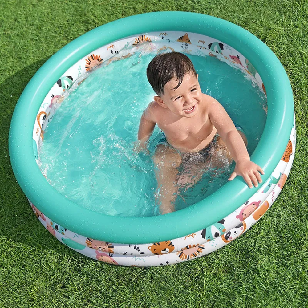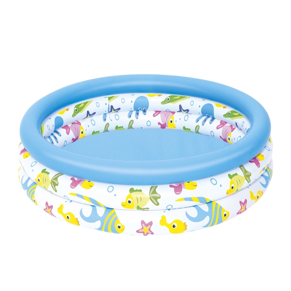 Базен на надувување за деца Аквариум 122 x 25 cm Bestway Сигурен базен за вашите деца, кој ќе стане совршена летна рекреација. Лесен е, па можете лесно да го преместите на најсоодветното место за вас, каде што вашите деца ќе можат безгрижно да уживаат во сончевите зраци и незаборавна забава. Малата висина на базенот и неговата површина гарантираат брзо загревање на водата од сончевите зраци, благодарение на што најмалите нема да чекаат долго за да можат да почнат да играат. Главни карактеристики: - интересни бои на дизајнот - три прстени на надувување - меко издувани ѕидови - меко дно Технички податоци: - димензии 122 cm x 25 cm - PVC материјал - капацитет на базен 140 литри - препорачана возраст од 2 години - препорачано полнење вода: 80% Тежина: 1 кг Димензии: 1.02М х 25СМ