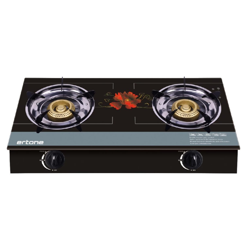 Марка: ERTONE Модел: ERT-MN-1102 Опис: Стаклен мини шпорет на гас 2 горилници со пиезо запалка Боја: црно стакло, тело од нерѓосувачки челик Гориво: ТНГ - цилиндар Тело од не'рѓосувачки челик Панел од поцинкуван лим и горно стакло од зацврстено стакло од 6 мм Тело од нерѓосувачки челик, стаклен слој 2 горилник на ТНГ Режач од леано железо за поголема издржливост и перформанси Месинг вител режач Брановидни режач Патентиран режач од 360º Ниска потрошувачка на гас Вградена пиезо запалка Автоматско палење Димензии со пакување: 72 x 39 x 9 cm. Димензии без пакување: 70 x 38 x 8 cm. Нето маса: - Тежина со пакување: 5,00 kg. Произведено според CE 1312 Може да се користи само за ТНГ гас.